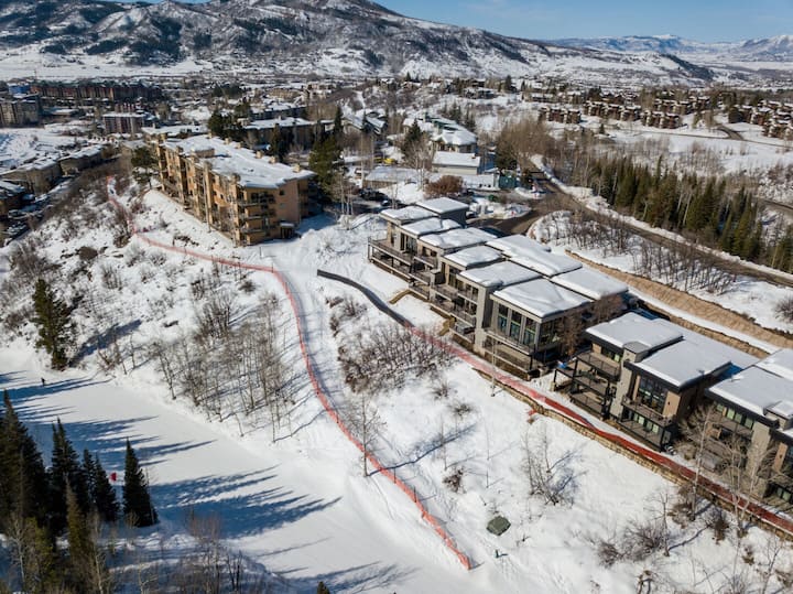 Je kunt skiën, fietsen of wandelen in en uit deze locatie! Verlaat je deur en de aangrenzende trap leidt in de winter rechtstreeks naar de skipistes en in de zomer wandel- of fietspaden. Dit appartement ligt pal naast het skigebied en het nationale bos, gelegen op een bergkam net boven het basisgebied van het skigebied, wat dit appartement zo 'n geweldig uitzicht geeft. Het gebouw heeft een lift, maar het is slechts één verdieping lager van het appartement naar de wasruimte of de skikleedkamer. Trek je laarzen aan, stap naar buiten en stap in je ski 's. Glide van en naar de beginnersniveau 'Right O Way' 'skipiste die' s nachts wordt verzorgd en rechtstreeks naar beide gondels leidt. Deze locatie heeft aparte ski-in en ski-outroutes van en naar de Right O Way trail. De ski in route begint verder de heuvel op, zodat skiën vlak is, niet bergopwaarts. Skiën is iets bergafwaarts, maar kinderen en beginners kunnen het gemakkelijk beheren. Bekijk onze foto 's ter illustratie en laat ons weten als je vragen hebt. Houd er ook rekening mee dat deze ontwikkeling een seizoensgebonden pendeldienst heeft. Tijdens het skiseizoen kun je met de shuttle van en naar het Gondola Transit Center rijden. Vanaf daar kun je de roltrap nemen naar de Gondola 's, of met de gratis stadsbussen naar supermarkten, of waar dan ook in de stad. Het huren of meenemen van een auto is volledig optioneel, wanneer je hier verblijft. In de lente, zomer of herfst wordt een auto aanbevolen, zodat je naar de vele staatsparken, wildernisgebieden en afgelegen delen van het nationale bos die Steamboat Springs omringen kunt.