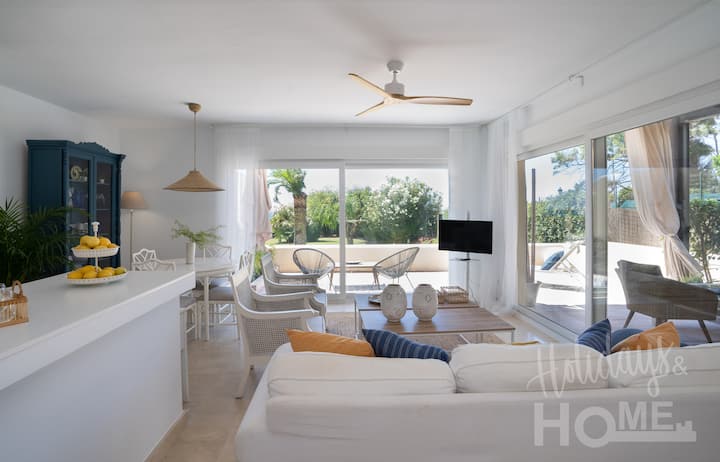 Elviria II aan het strand met zeezicht, zwembad en tuin