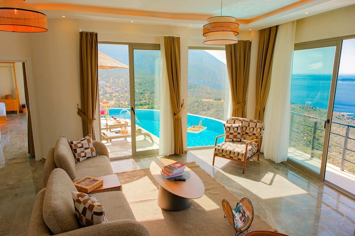 Toen we de prachtige oevers van de Tarabiya van Istanbul achter ons lieten, bevonden we ons door die van de blauwe Middellandse Zee. Met onze 20 jaar ervaring in engineering met onze architectonische principes hebben we de plek van onze dromen op de heuvel boven Kalkan gecreëerd.
