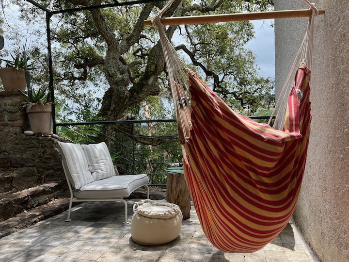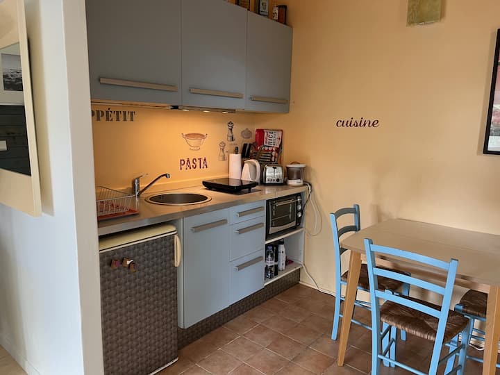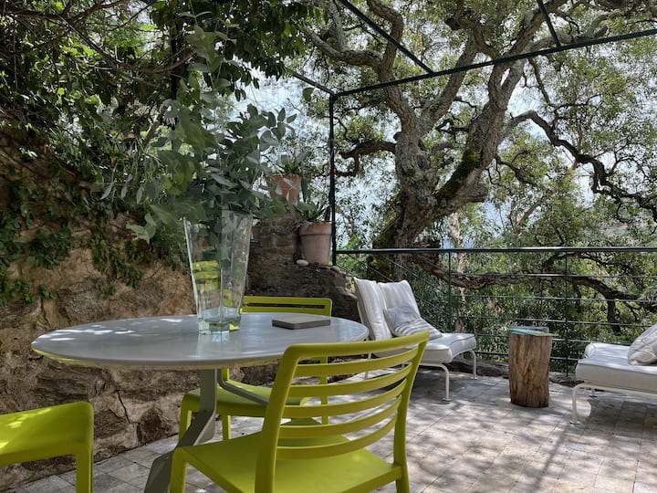 Studio verscholen in het groen, dicht bij de zee