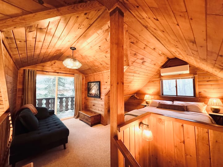 EXTRA LOFT CHALET: De accommodatie beschikt over een andere chalet-stijl structuur – een garage voor twee auto's met een tweede loft privéruimte erboven.
