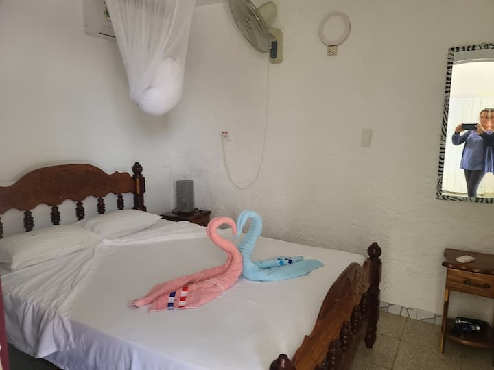 Ons huis ligt vlakbij het centrum, op slechts een paar stappen van alles wat er in de stad gebeurt, waardoor het een ideaal referentiepunt is om in Viñales te verblijven. Voor ons is comfort en gemak een prioriteit. Elk van onze kamers is ontworpen om je een onvergetelijke ervaring te bieden, met alle voorzieningen die je nodig hebt voor een comfortabel verblijf. De kamers met airconditioning hebben een eigen badkamer met warm en koud water, kluis, minibar, kleerhangers, buitenramen en een gezellig ontwerp waardoor je je thuis voelt.