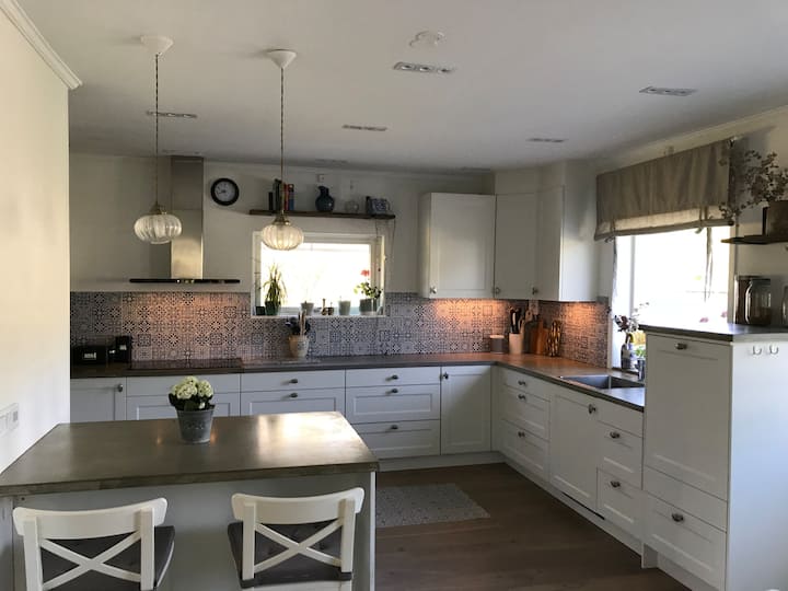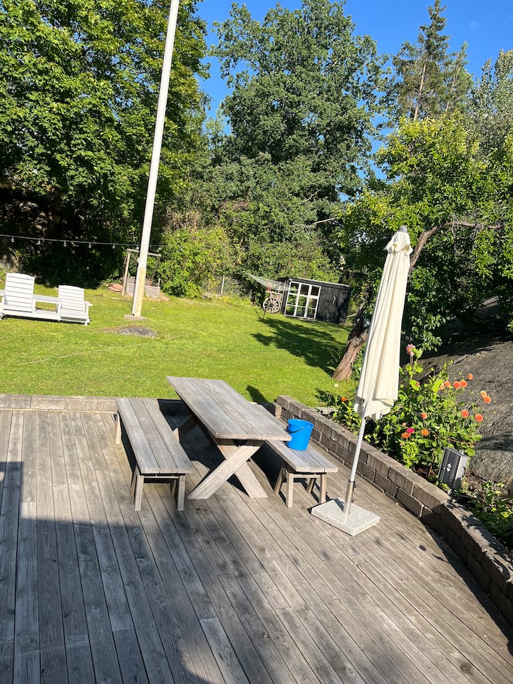 Hier krijgt het gezin een ruime woning met een groot perceel dicht bij zowel de archipel als de stad. In de zomer is er een trampoline, schommels, kubb, etc. Fietsen zijn beschikbaar om te lenen. In de winter als er sneeuw ligt, nodigt de achterkant je uit om te sleeën op de berg. Het huis ligt dicht bij de bus die je in minder dan 20 minuten in de sluis brengt. In de nabije omgeving zijn er diverse leuke zwemgebieden op loopafstand waar in de winter enkele meren overgaan in schaatsbanen.