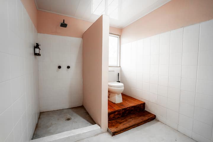 Geniet van een lichte, open keuken op slechts een steenworp afstand van je kamer. Deze gedeelde ruimte is volledig uitgerust met een oven, een koelkast, een gefilterde waterdispenser, kookgerei, een koffiezetapparaat (met koffie!) en een eettafel, waardoor het bereiden van maaltijden gemakkelijk en gemeenschappelijk is. Of je nu ontbijt klaarmaakt of verse producten uit de stad geniet, je voelt je meteen thuis.