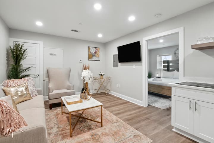 Er is een bijgevoegde evenementenruimte en trouwlocatie. Er zijn nog vijf andere appartementen in het gebouw. Wees respectvol voor je buren. Houd er rekening mee dat er een aangrenzende muzieklocatie is die bekend staat om het organiseren van concerten en lokale evenementen. Er is een potentieel voor lawaai in de suite, evenals gewapende beveiliging voor evenementen met meer dan 500 personen.