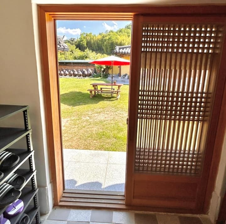 Het is het mooiste dorp in Korea, Namsayedamchon, Gamseong Hanok Stay Yedam Hanok. Yedam Hanok is een plek waar het oude hek is geregistreerd als een cultureel pand met een rustige en prachtige Koreaanse tuin. Het is een plek waar je de deur kunt openen en de weelderige kleur van de dennenbomen kunt vullen en een warme en vriendelijke tijd kunt hebben in Yedam Hanok.