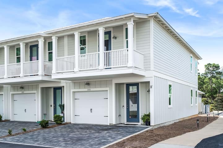 Ontdek 30A Townhomes, een nieuwe kustgemeenschap die luxe leven combineert met natuurlijke schoonheid. Deze intieme enclave ligt op slechts enkele minuten van de witte zandstranden van 30A en gelegen in de buurt van Eastern Lake en Point Washington State Park en is perfect voor paddleboarden en natuurwandelingen.