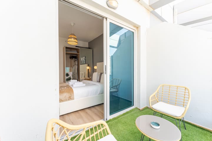 Centraal 1BR in jachthaven met privéterras en zwembad