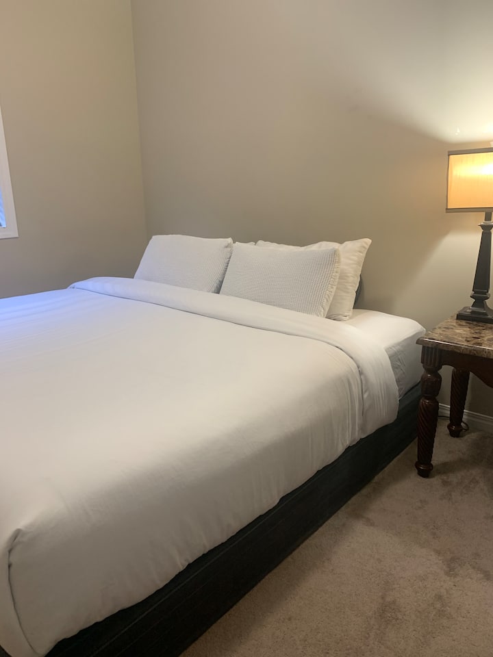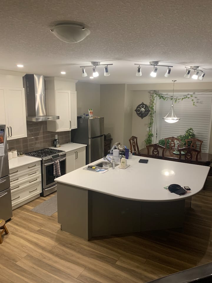 Lees: voor kortingen op lange termijn kun je rechtstreeks contact met ons opnemen. Boekingen op dezelfde dag zijn afhankelijk van de beschikbaarheid van een schoonmaker. Makkelijk naar Rocky Mountains, Banff etc. Kingbdrm in ons familiehuis, volledige keuken, toegang tot de begane grond, woonruimtes, eetkamer, toilet. Geen kosten als de derde gast een kind is, boek 2 volwassenen, stuur ons een bericht voor het kind.