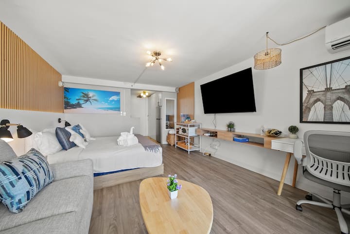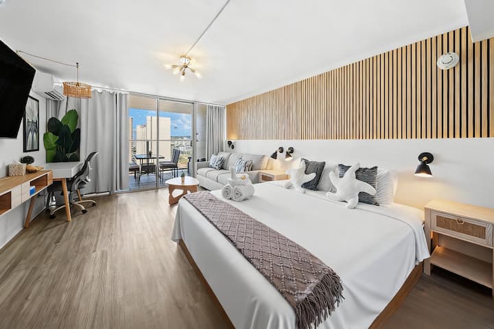 Wakiki 30FL gezellige studio zwembad & oceaanuitzicht & vuurwerk