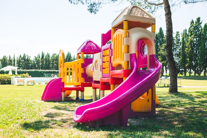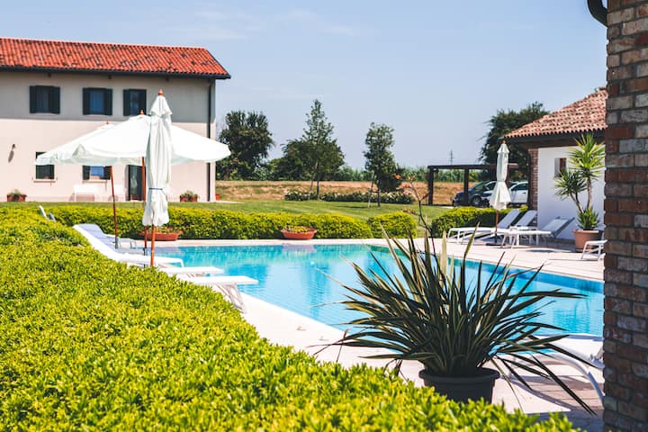 Dit is een van de weinige accommodaties in de omgeving met een zwembad.