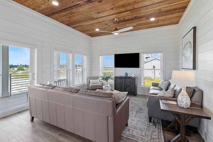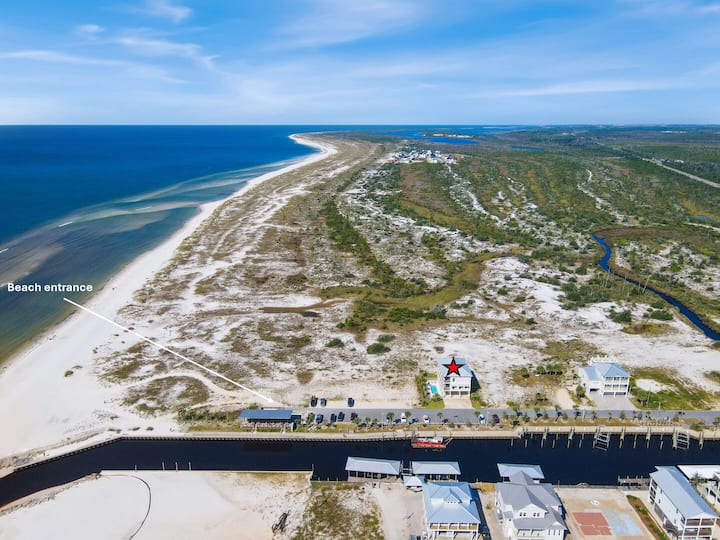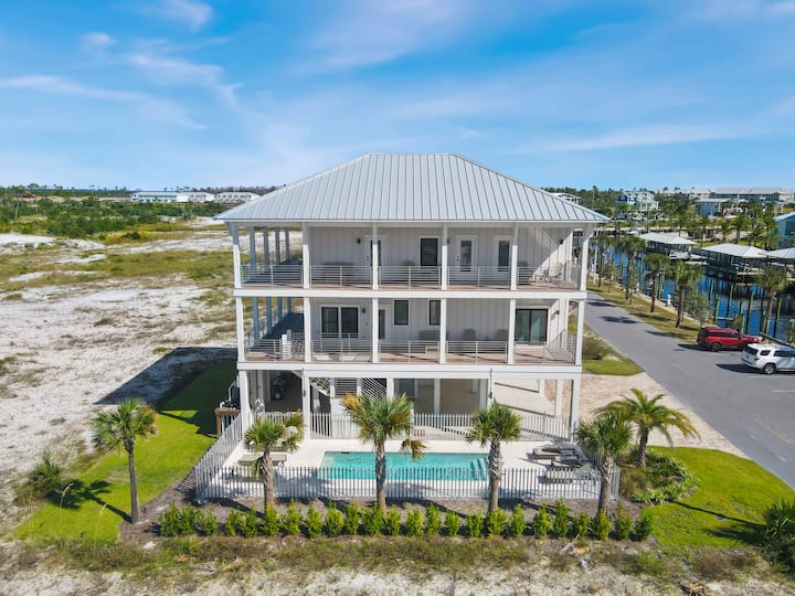 Amistad, genesteld op het westelijke puntje van Mexico Beach, wat 'vriendschap' betekent, biedt een adembenemend panoramisch uitzicht op de Golf en het kanaal. Privézwembad met optie om te verwarmen, boot parkeren, buiten vermakelijke ruimte met smart-tv, 500 stappen naar het strand!