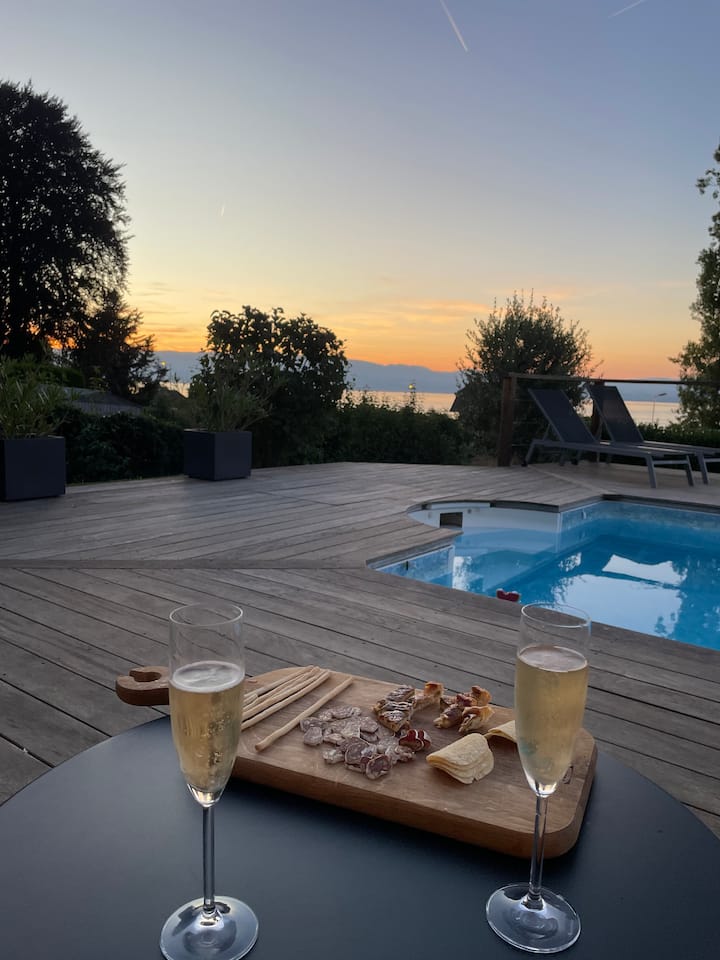 Mooie villa met zwembad – uitzicht op het meer en de bergen