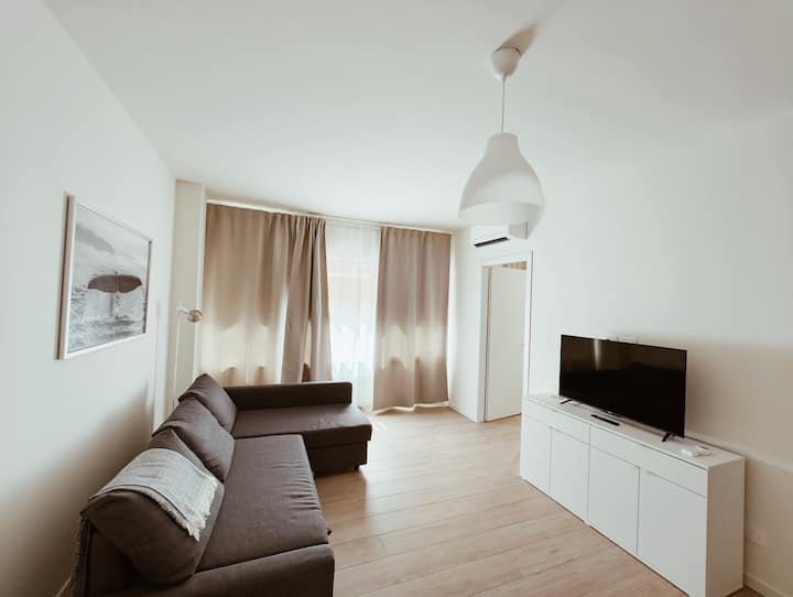 De minimalistische inrichting, lichte kleuren en zachte tinten creëren een sfeer van rust en kalmte, de volledigheid van de voorzieningen garandeert maximaal comfort.