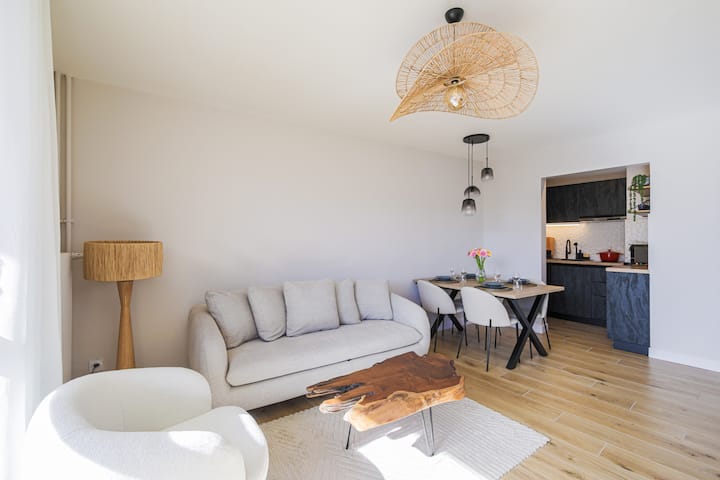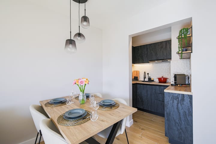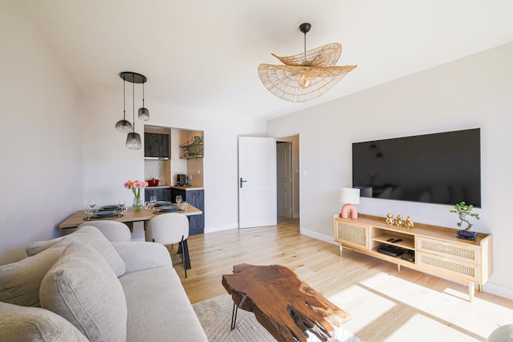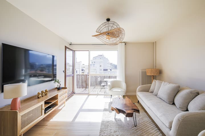 Licht en designappartement, uitzicht op de bergen