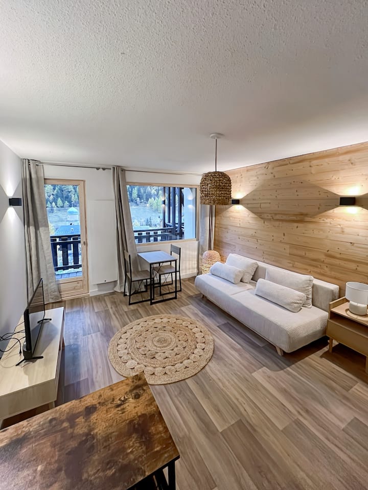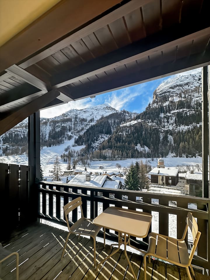 Studio met garage, uitzicht op de pistes