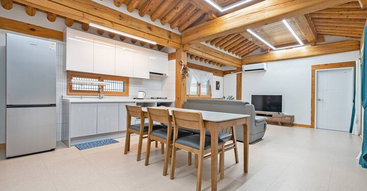 Het is uitgerust met een grote woonkamer en tv (IPTV), basisborden, kommen, lepels en eetstokjes, keukengerei, kookfornuis, magnetron, waterkoker en koelkast.