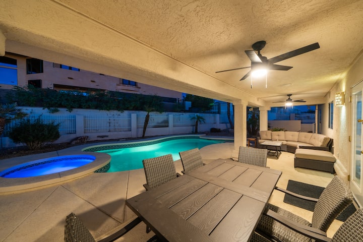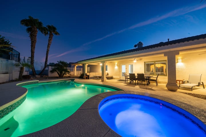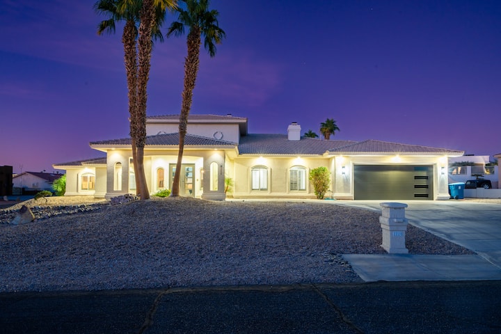 Deze 5br 4bath, 4400 vierkante voet huis, biedt gemakkelijk plaats aan 20 personen met veel ruimte om zich te verspreiden en te genieten. Deze onlangs gerenoveerde woning heeft alle voorzieningen en luxe die nodig zijn voor een meergezinsgroep, of voor een vriendengroep die geniet van alles wat Havasu te bieden heeft.