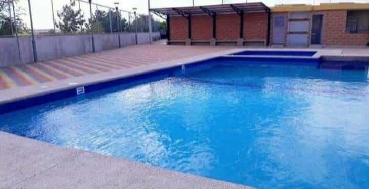 Dit is een van de weinige accommodaties in de omgeving met een zwembad.