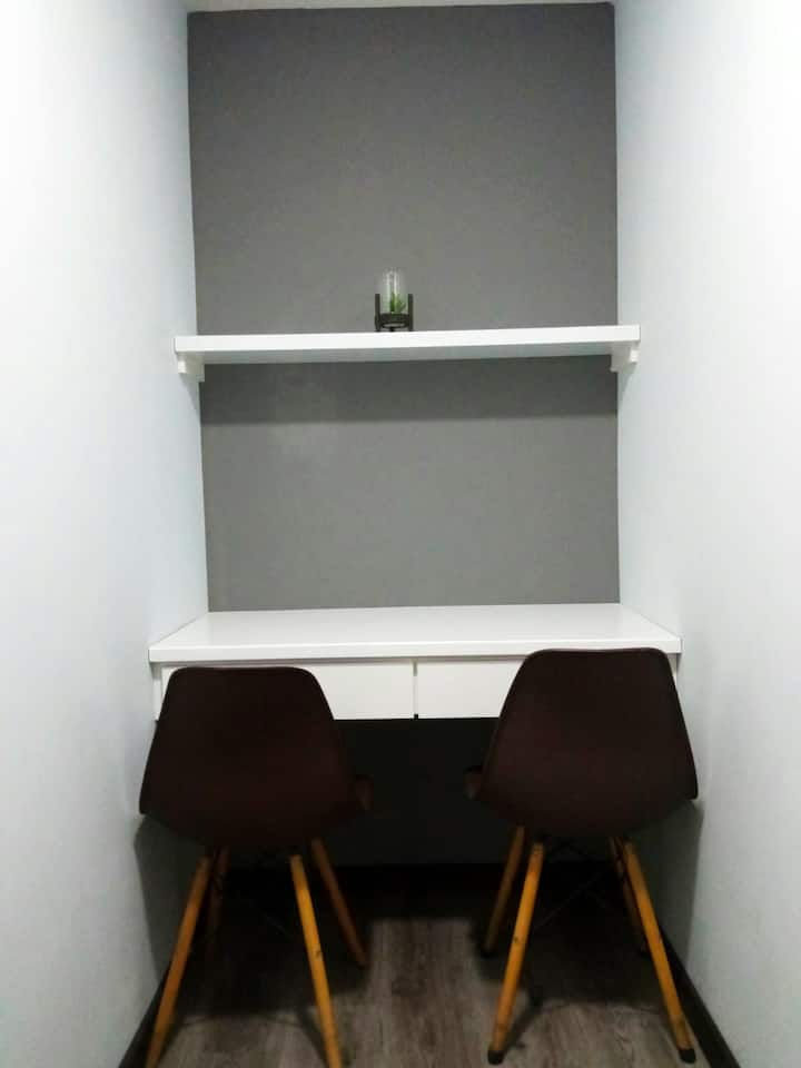 Een kamer met wifi die geschikt is voor werken op afstand.