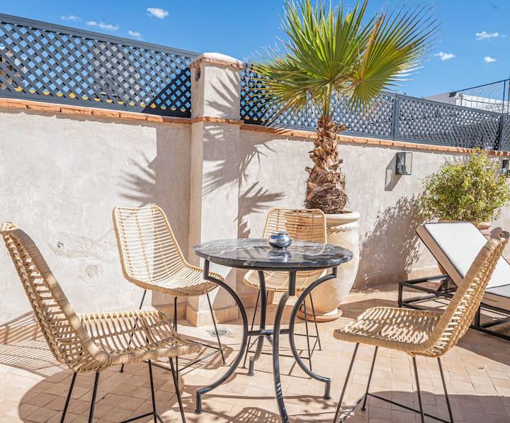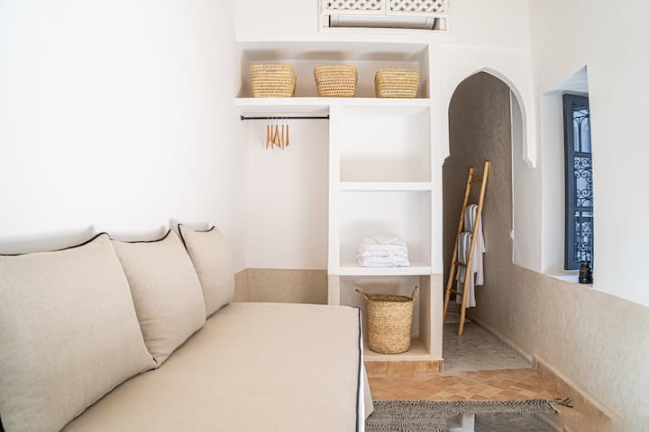 Gepassioneerd door Marrakech en zijn unieke architectuur, verliefd op deze fascinerende stad, ontwierp ik deze riad om je een authentiek en inspirerend verblijf te bieden, waar elk detail de schoonheid en ziel van Marrakech weerspiegelt.