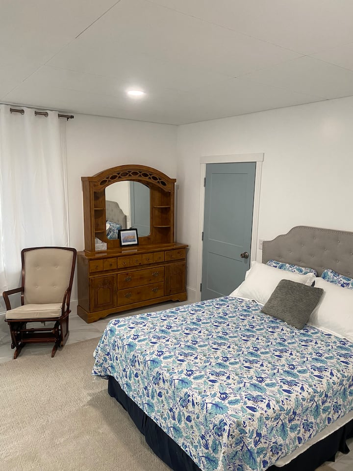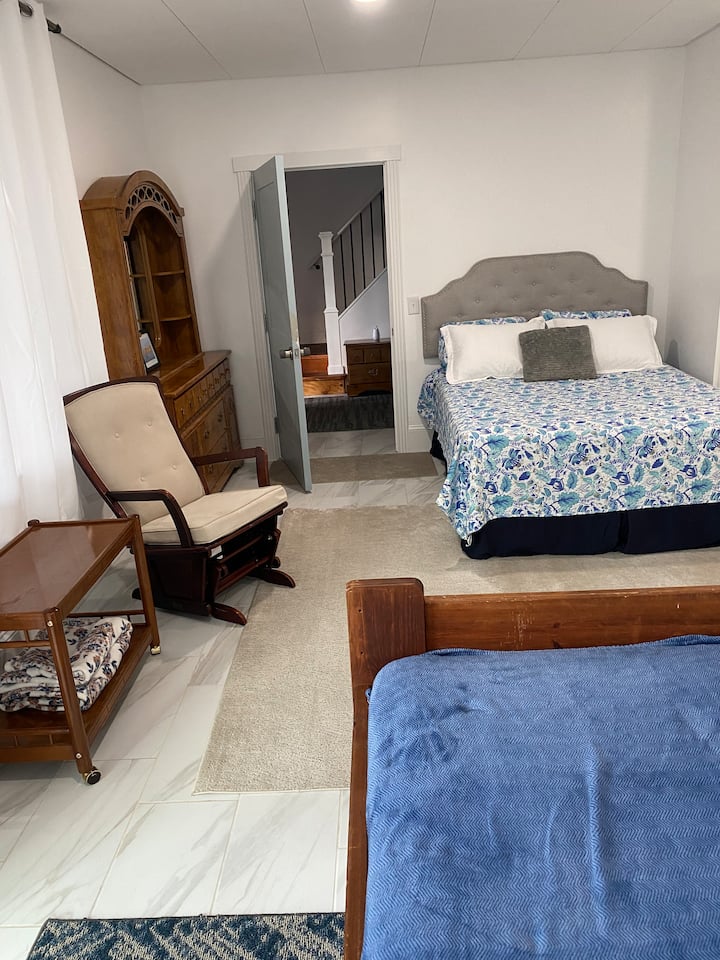 De tweede slaapkamer op de begane grond, genaamd de Breezeway Room, heeft zijn ingang vanaf de noordkant van het huis, naast de keuken. Deze slaapkamer heeft een glazen schuifdeur naar het terras op de begane grond, met 2 extra grote ramen die de kamer zeer licht en gastvrij maken. Het heeft een eigen opgang naar de badkamer die grenst aan de keuken. Het is ingericht met een queensize bed, een stapelbed met twee eenpersoonsbedden, een schommelstoel en een dressoir.
