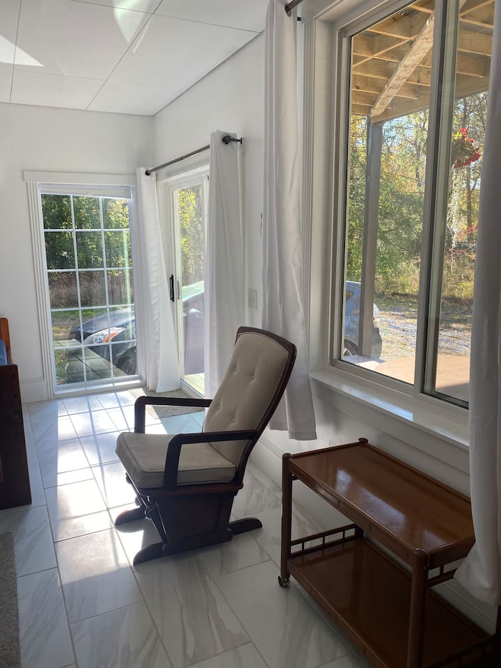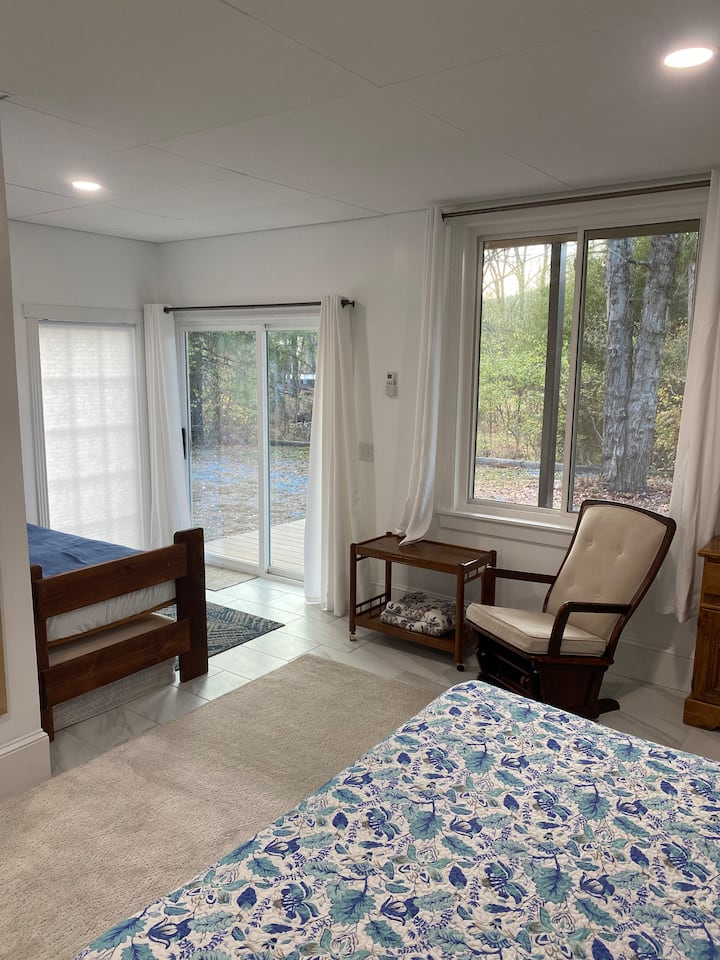 Ga er even tussenuit en kom tot rust in de Brookside Room in Cedar Spring Oasis. Geniet van deze prachtige kamer op de begane grond met een glazen schuifdeur naar het benedendek van het huis. Twee extra grote ramen zorgen ervoor dat de middagzon de kamer opfleurt en verwarmt. De kamer heeft een eigen, complete badkamer. Het huis is nieuw gebouwd, maar we hebben zoveel mogelijk teruggewonnen materiaal, wat het een rustiek gevoel geeft. Als we niet alle ruimte voor onze familie en vrienden nodig hebben, laten we je daar graag van genieten.