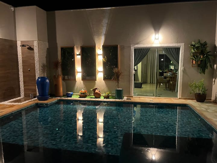 Dit is een van de weinige accommodaties in de omgeving met een zwembad.