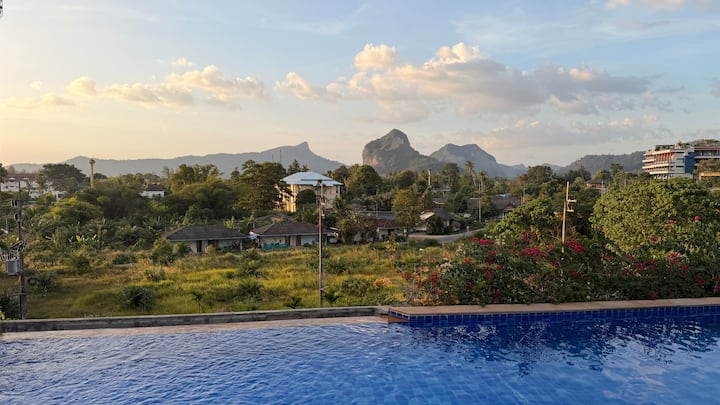 Het appartementenhotel met het zwembad op het dak is gunstig gelegen dicht bij het centrum van Ao Nang. Terwijl geplaatst in een rustige straat buiten het bereik van het nachtleven geluiden, het is slechts 0,9 km afstand van de nabijgelegen buurtwinkels, cafés en restaurants en 1,3 km afstand van de Ao Nang Landmark nachtmarkt. Het strand van Ao Nang ligt op slechts 1,5 km afstand. Het is waar alle boottochten naar paradijselijke eilanden beginnen.