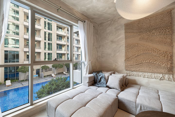 Stap op het balkon om te genieten van het ontspannende zwembad en een prachtig uitzicht op de stad – de perfecte plek om te ontspannen met een kopje koffie in de ochtend of's avonds tot rust te komen.