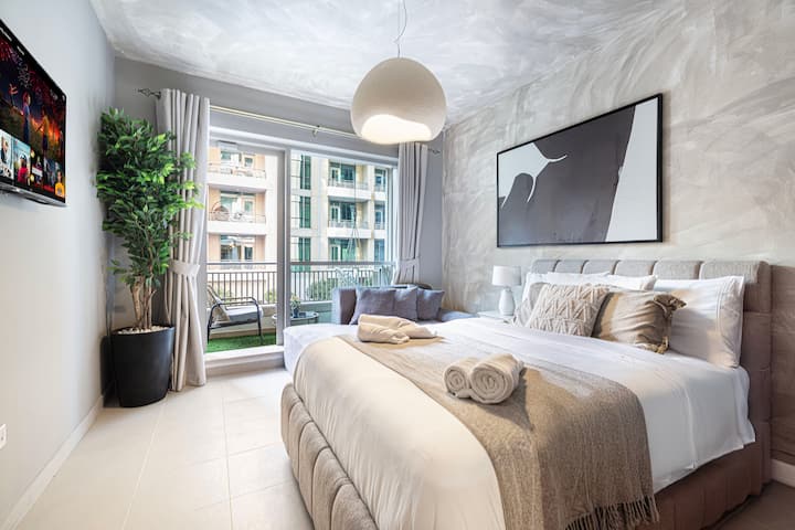 Welkom in je luxe oase in het hart van Downtown Dubai! Dit ruime studio-appartement is met zorg ontworpen om een comfortabele en verfijnde thuis-weg-van-huis-ervaring te bieden.