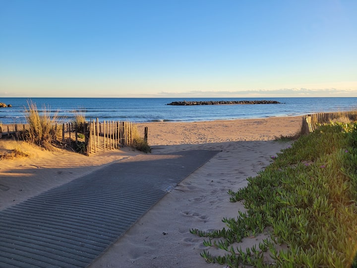 Voor liefhebbers van verse vis en schelpdieren, gevangen op dezelfde dag, ligt de haven van Chichoulet de Vendres op slechts 5 minuten rijden met de auto, net als wateractiviteiten, een kinderpark en paardrijden. Voor meer levendige avonden wacht het centrum van Valras-Plage, 10 minuten met de auto, op je met zijn voetgangersstraat, entertainment, concerten en vuurwerk.