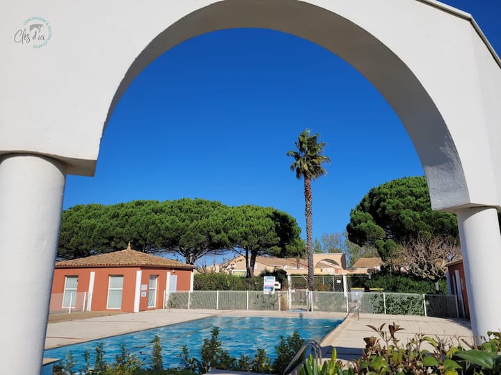 Laat je verleiden door dit charmante vakantiehuis, op slechts 5 minuten lopen van het strand van Vendres. Dit huis ligt in een vriendelijke residentie met een zwembad en biedt een perfecte omgeving om te ontspannen terwijl je geniet van de vele activiteiten om te delen met familie of vrienden.