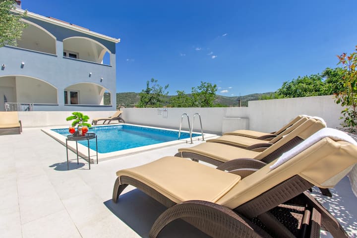 Dit is een van de weinige accommodaties in de omgeving met een zwembad.