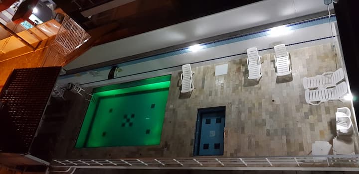 Dit is een van de weinige accommodaties in de omgeving met een zwembad.