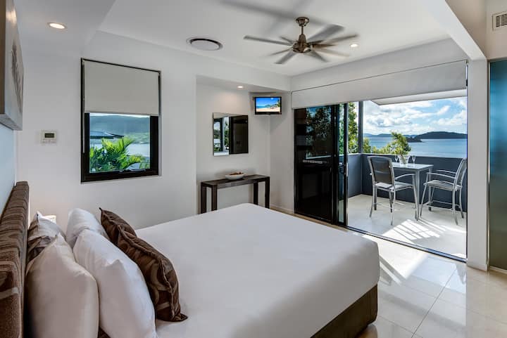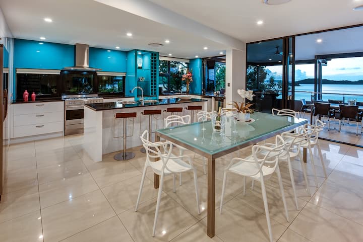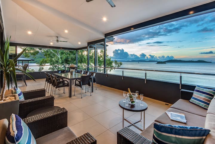 Geniet van een prachtig uitzicht op het sprankelende turquoise Whitsunday-wateren vanuit bijna elke hoek, evenals op het omliggende bushland.