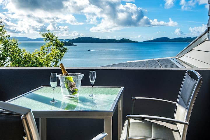 Haal alles uit het prachtige weer van Hamilton Island en het spectaculaire uitzicht op het water, door te ontspannen op je grote, overdekte buitenbalkon. Dit omvat een barbecue en een buitentafel voor maximaal acht personen.