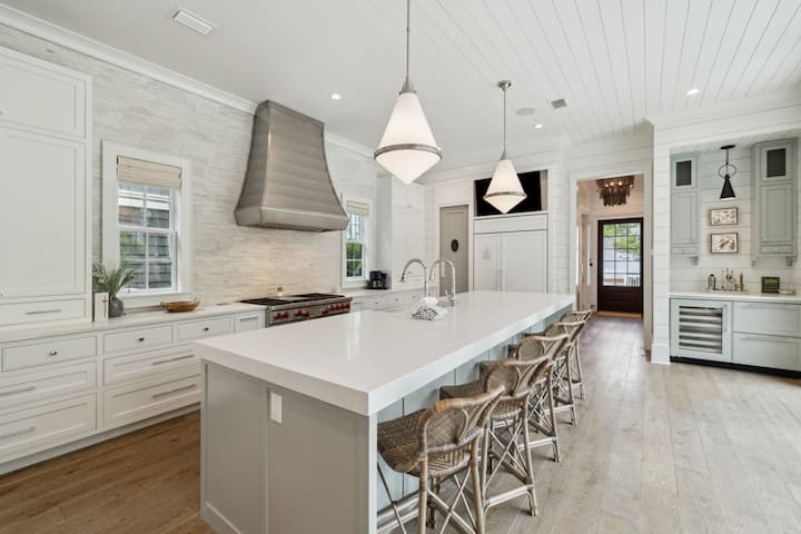 Geniet van een comfortabel verblijf in WaterSound 90 Watch Tower Lane, met 6 slaapkamers en 6,5 badkamers. Deze elegante oase beschikt over een omheinde gemeenschap met beveiliging ter plaatse, nieuwbouw en een privéverwarmd zwembad ** Zwembadverwarming is beschikbaar voor deze accommodatie vanaf 1 oktober. Deze prachtige accommodatie in Watersound, Florida, biedt gastvrije woonruimtes, moderne voorzieningen en gemakkelijke toegang tot lokale hotspots.