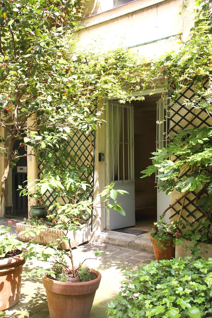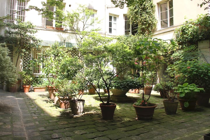 Flat in een met bomen gevulde binnenplaats bij de Marais