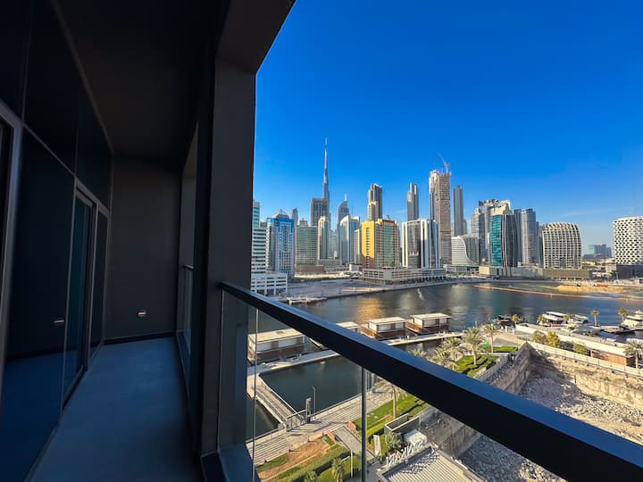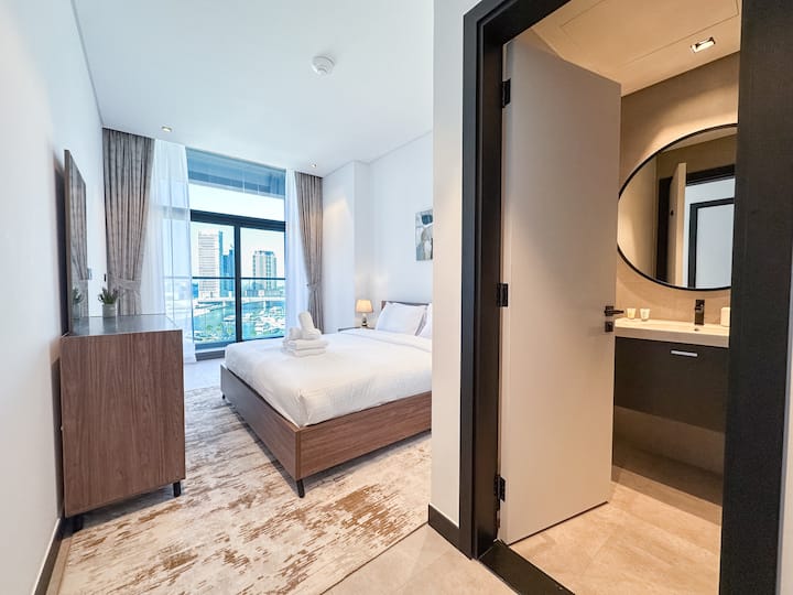 Luxe 1BR in 15 Northside Tower met uitzicht op de gracht