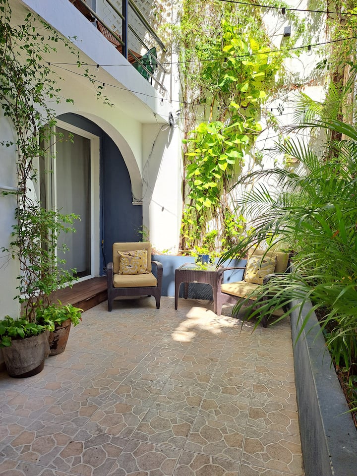 Gezinsvriendelijke 2BR Retraite met gezellige patio in Playa