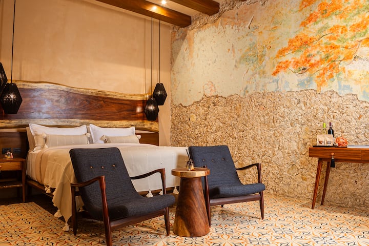 Verfijnd design: Wij bieden 14 kamers ingericht in een eigentijdse stijl die het rijke culturele erfgoed van Yucatán viert. Elke ruimte is zorgvuldig ontworpen om maximaal comfort en elegantie te bieden.