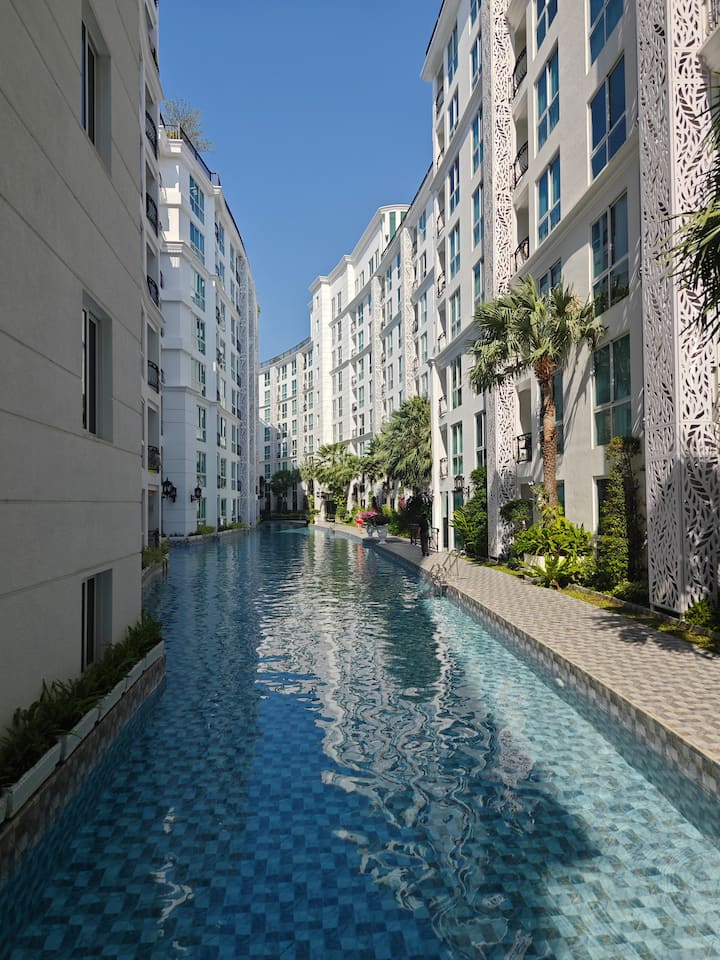 C5 Pattaya City Center Watersysteem Appartement Dichtbij Walking Street Met een zwembad, sauna en fitnessruimte