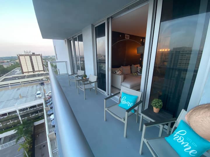 Het heeft een groot balkon met stoelen dat je uitnodigt om te genieten van je verblijf in Miami.