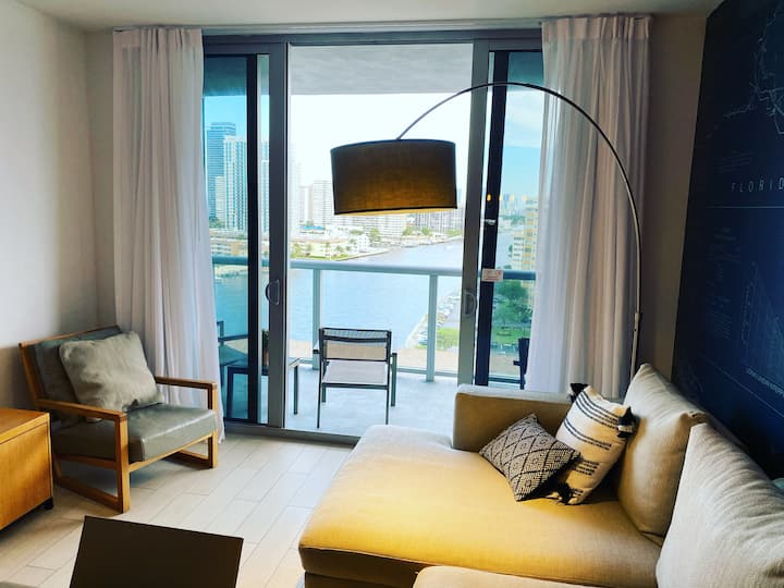 Het appartement heeft toegang tot een spectaculair zwembad over de intercostal, vanwaar je kunt genieten van een uitzicht op boten die dit prachtige Miami kanaal varen.