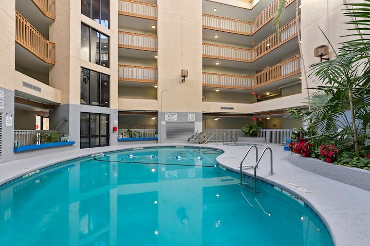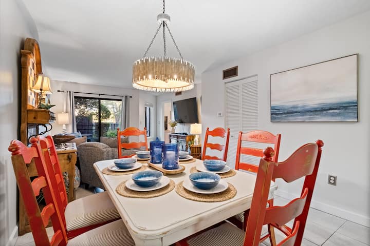Strand, zwembaden, bubbelbad, tennisbaan, wandeling naar Coligny Plaza!