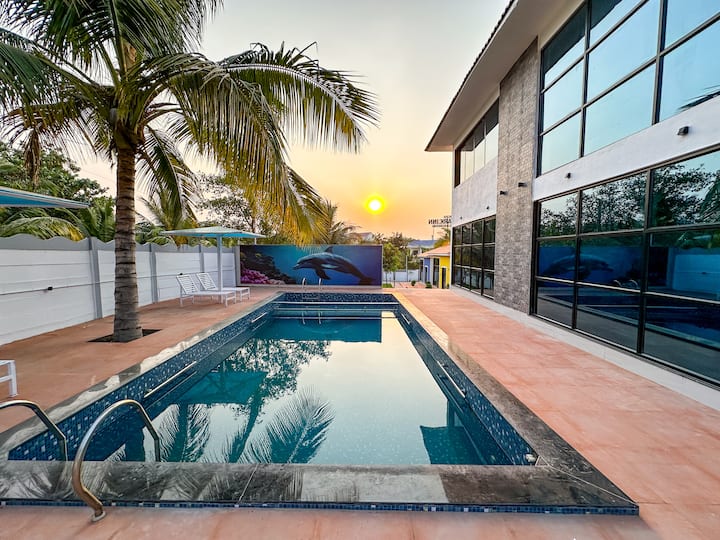 Glazen villa met zwembad in Aurangabad
