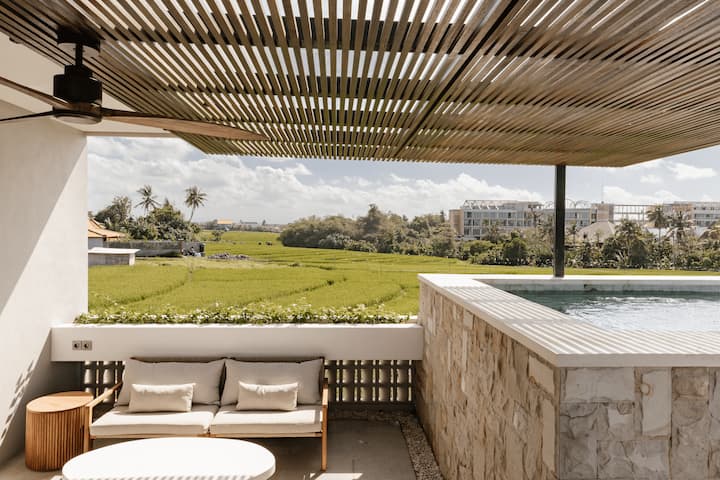 Weelderige rijstveld villa in Pererenan in de buurt van het strand