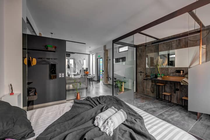 Met zijn industriële esthetiek en transparantie is de Nirvana loft intiem, sensueel en lichtgevend. Deze loft is zorgvuldig ontworpen om je een artistieke ervaring te bieden en is een levende galerie met originele werken voor je plezier.