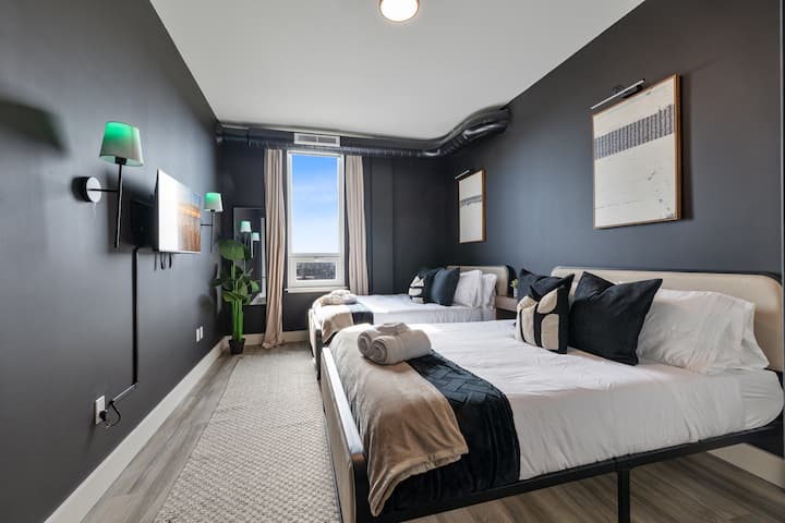 Onze prachtige 2br beschikt over 2 kingsize hemelbedden, 2 queensize bedden en 2 comfortabele opklapbedden (10 slaapplaatsen). Onze ruimte is perfect voor kleine groepen/gezinnen die NY bezoeken, de American Dream Mall (enmeer) voor korte/lange en last-minute verblijven.